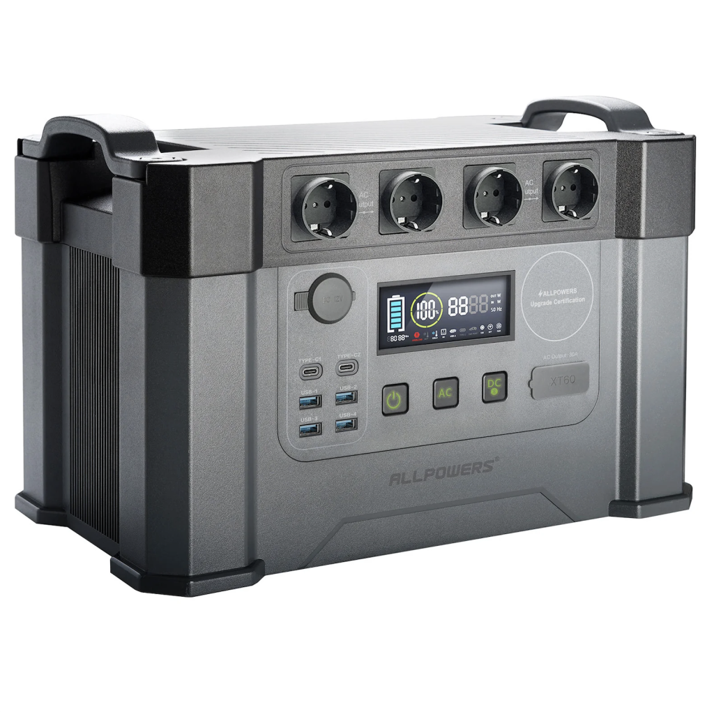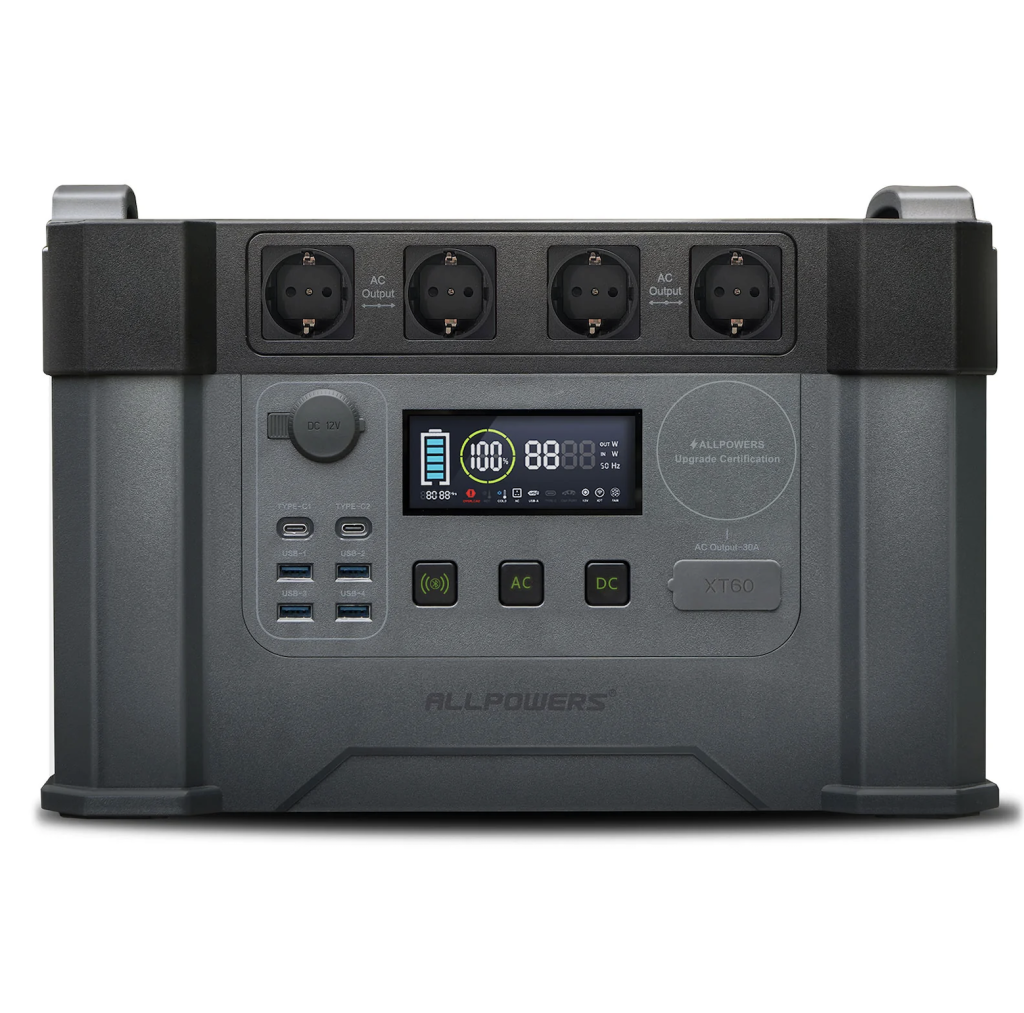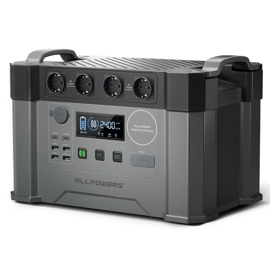 S nabíjecí stanicí Allpowers S2000 získáte vždy dostatek energie na cestách pro nabití drobné elektroniky, bílé elektroniky nebo dokonce elektrických vozidel. Nabíjecí stanice vám tak skvěle poslouží například při kempování jako hlavní zdroj energie pro elektroniku, ledničky, televizi, automobilovou chladničku nebo jako záložní baterie pro nabíjení elektrických vozidel. Kapacitu integrované 1 500Wh baterie je možné sledovat na displeji na přední straně, případně skrze mobilní aplikaci, kterou můžete s nabíjecí stanicí spárovat skrze technologii Bluetooth. Snadnému přenášení napomáhá dvojice madel a hmotnost 14,5 kg.