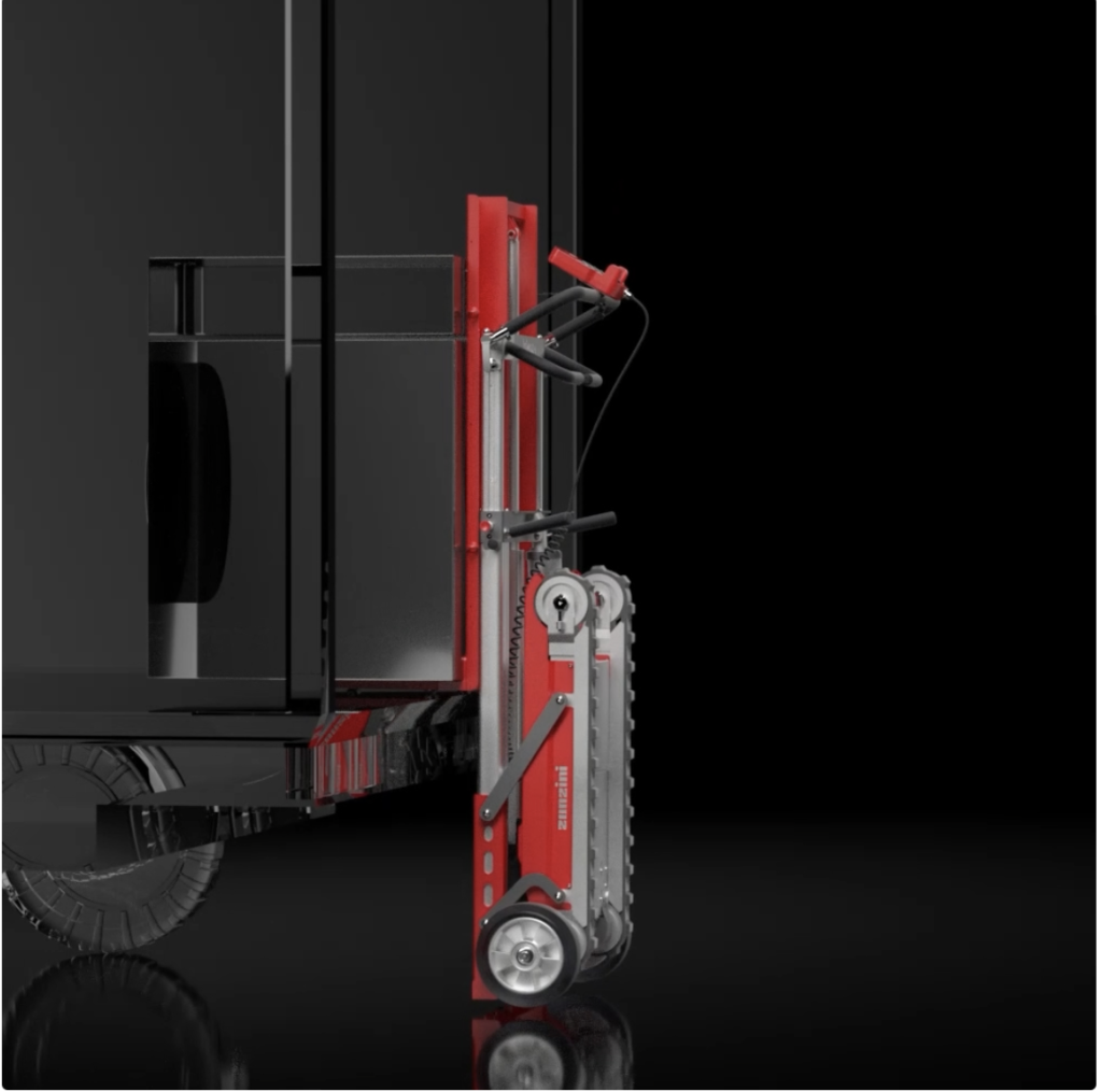 Díky pásům můžete naložit a vyložit schodolez na nákladní auto, aniž byste jej museli zvedat. Jednoduše umístěte pásy na korbu dodávky, abyste mohli řídit schodolez nahoru nebo dolů. Není potřeba ho zvedat. Buddy je kompletní a multifunkční elektrický vozík navržený tak, aby eliminoval potřebu fyzické námahy při přepravě zboží.