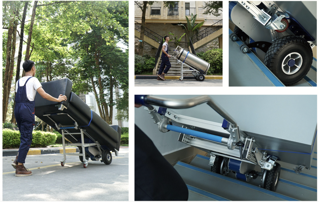 Elektrický schodišťový rudl je úžasný pomocník při přepravě nákladů do schodů a ze schodů. Pomůže Vám přepravit náklad rychle a bez námahy. Rudl je vyroben z hliníku je tedy velmi lehký a snadno ovladatelný. Je využíván pro logistiku, dodávku vody, stěhování nábytku, domácích spotřebičů, kopírek atd.