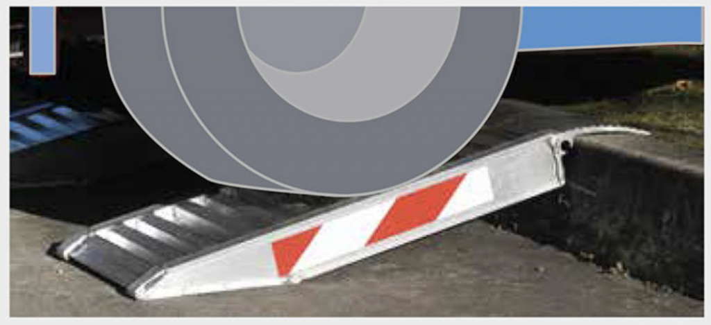 Krátké hliníkové nájezdy 3000/495 s nosností 3000 kg a vnější šířkou 300 mm. Upozorňujeme, že hliníkové nájezdy jsou vhodné pouze pro vozidla s gumovými koly nebo pásy. Nelze je používat pro ocelová pojezdová kola nebo ocelové pásy.