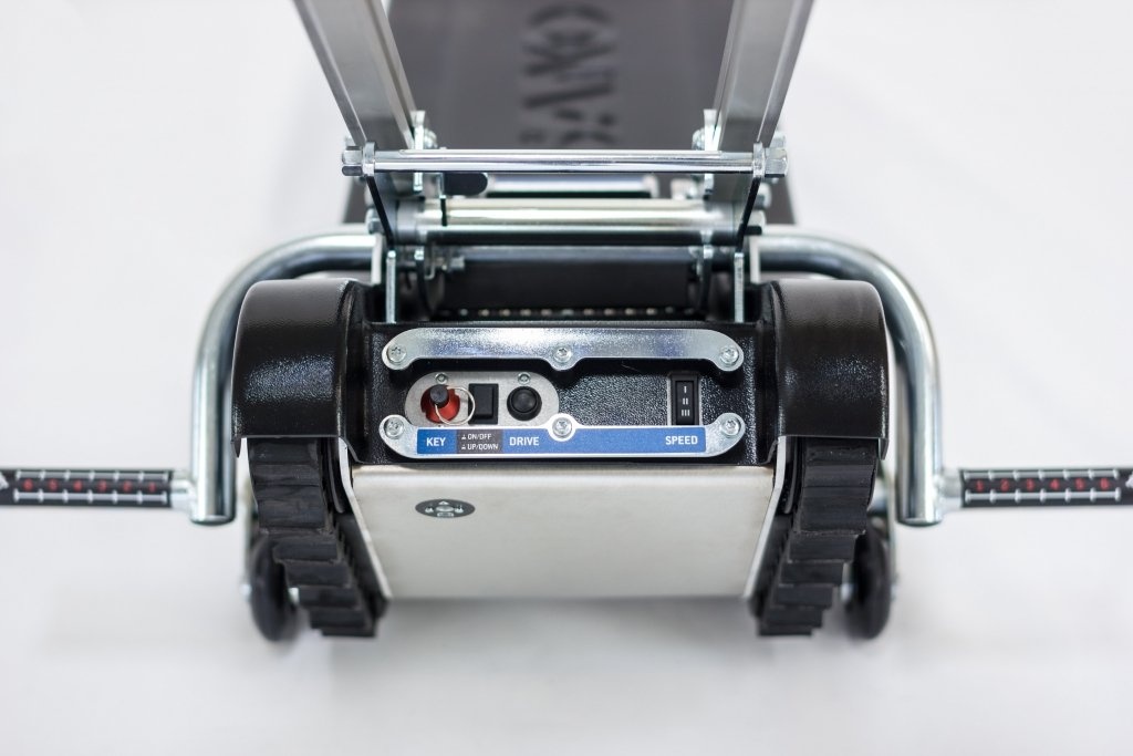 Pásový schodolez je robustní a spolehlivé konstrukce a je vybaven pojezdovými kolečky, která umožňují rychlý pohyb při delších rovných přejezdech a dobrou manévrovatelnost na menším prostoru. Vyznačuje se velkou stabilitou na schodech. Je vybaven elektronickou ochranou proti přetížení, kontrolou náklonu, možností nastavení tří rychlostí (4,5 až 6,5 m/min.), integrovaným diagnostickým systémem, indikací stavu baterií LED diodami, nouzovým tlačítkem Stop a bezpečnostním pásem.