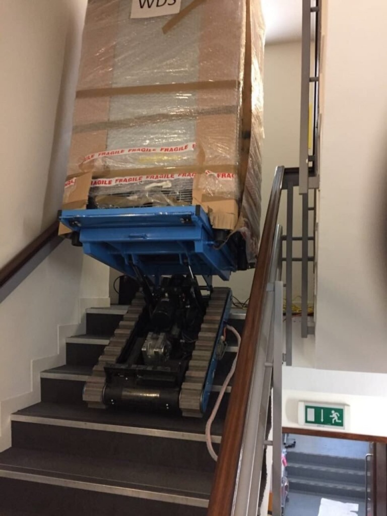 Schodišťový robot 1750 vyžaduje proto méně vysílacích pracovníků; Kromě toho je riziko dopravy v porovnání s konvenční dopravou na schodech mnohem nižší.